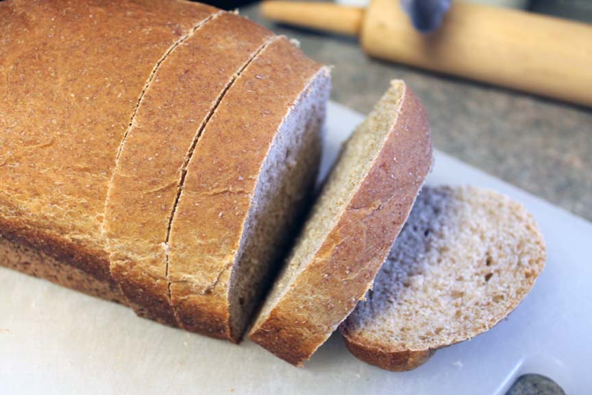 Slice homemade bread into pieces one inch thick. You’ll want to use a good hearty bread that will hold up to the soaking. In fact, this is a perfect use for bread that is a couple days old and has gotten rather dry and stale.