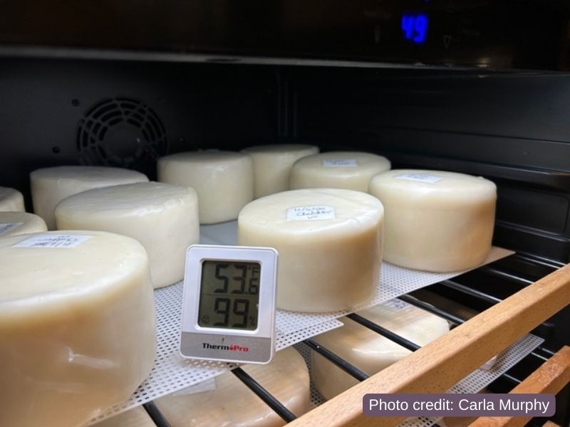 Carla says, “This thermometer/hygrometer is perfect for your cheese cave. You can check the accuracy of the temperature and monitor the humidity inside your cave.”