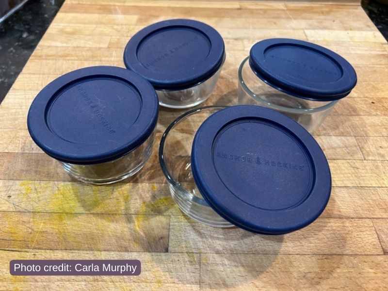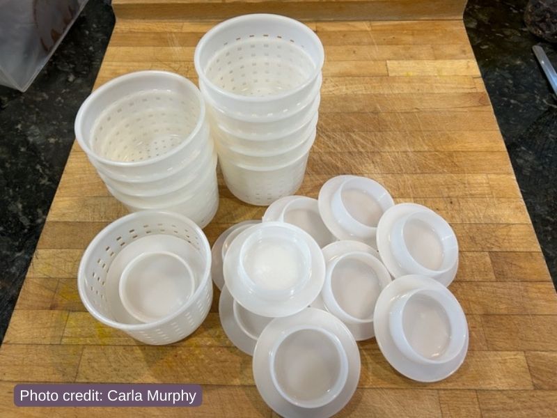 Carla says these containers “fit the chèvre that pops out of the chèvre cheese forms,” and she pairs them with her cheesemaking equipment for easy storage.