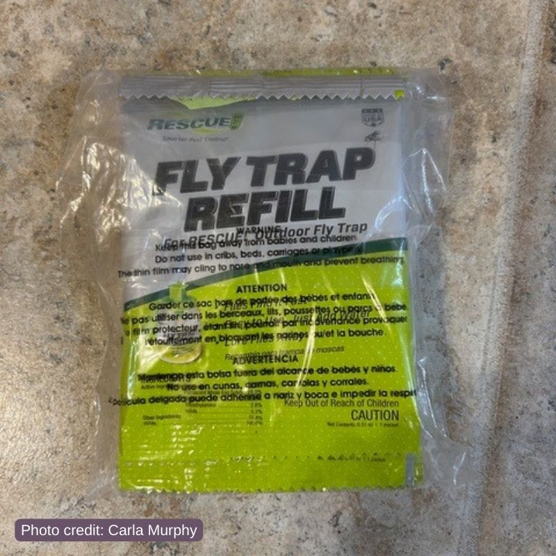 Carla says these refills are “stinky but they work… in addition to Arbico’s Fly Predators.”