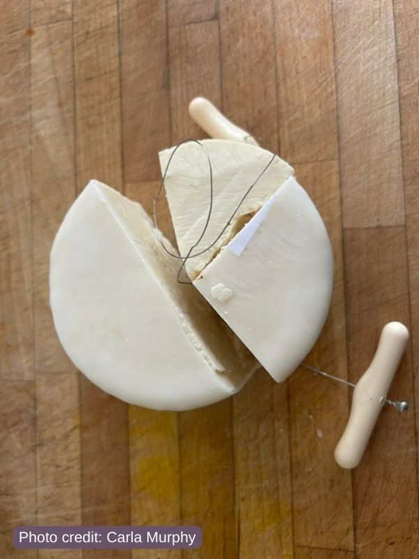 Carla says, “This cheese wire is perfect for cutting hard, aged cheeses. Our cheese knife isn’t long enough to cut the width of our wheels, but this wire cuts like butter!”