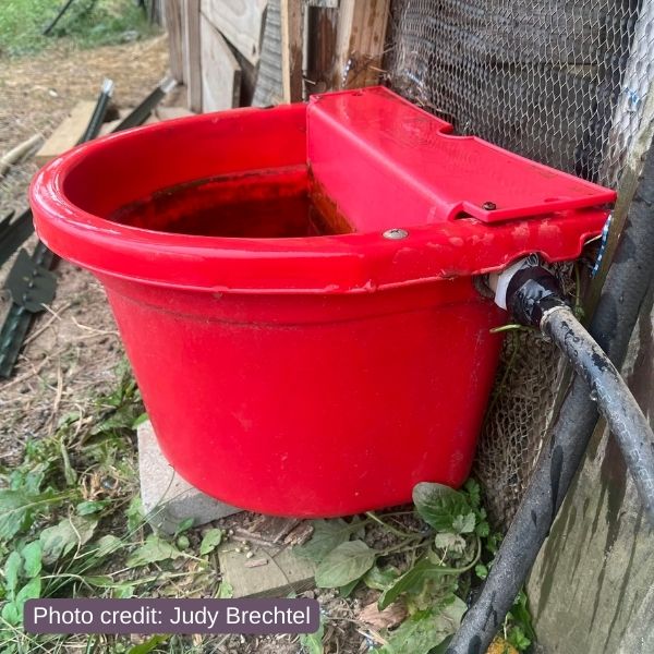 Judy says, “I have several of these automatic water buckets. I don’t have to remember to water, and I don’t have to remember to turn the water off! They screw onto a water hose and are easy to clean.”